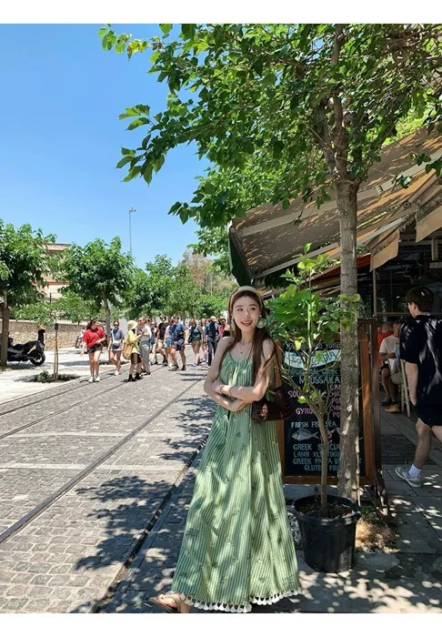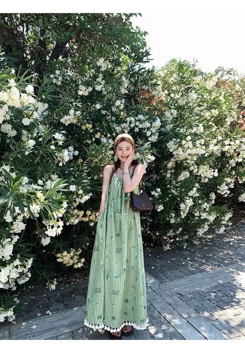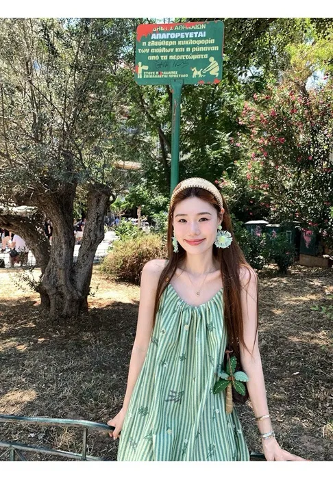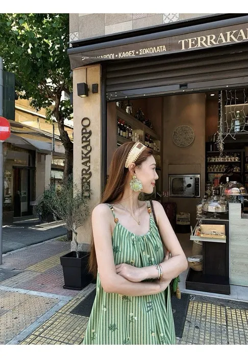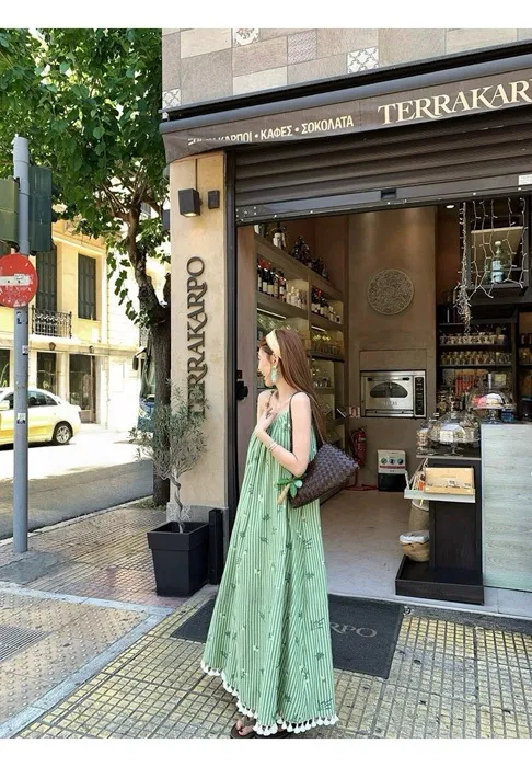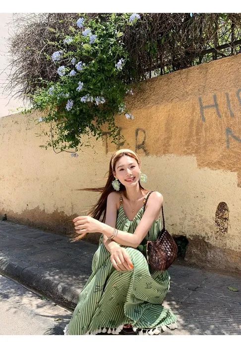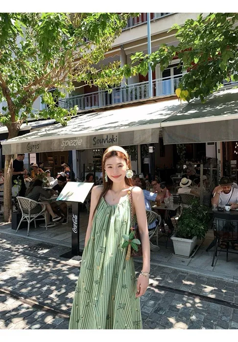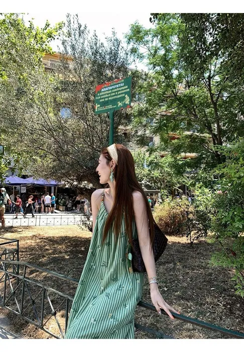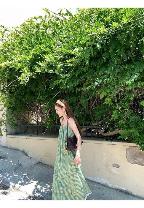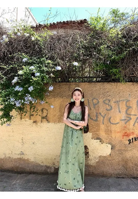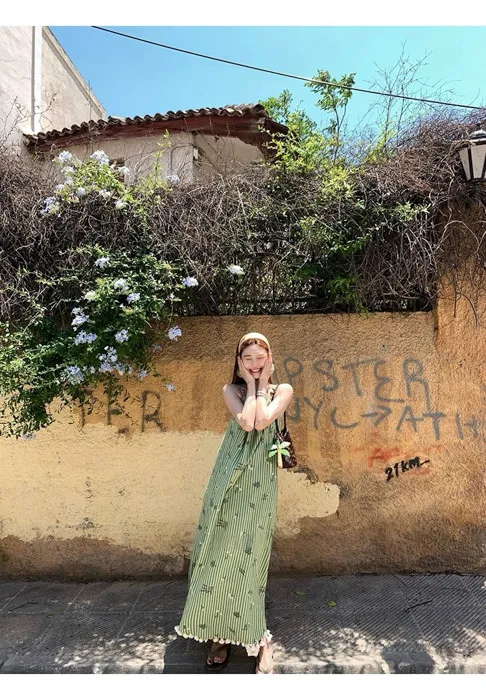 這件"一秒出國"綠條紋長洋裝