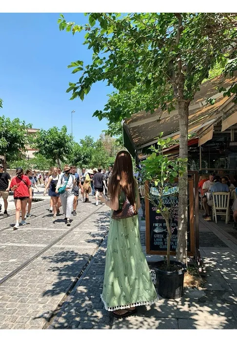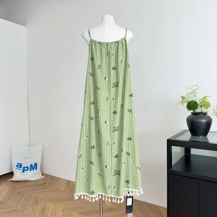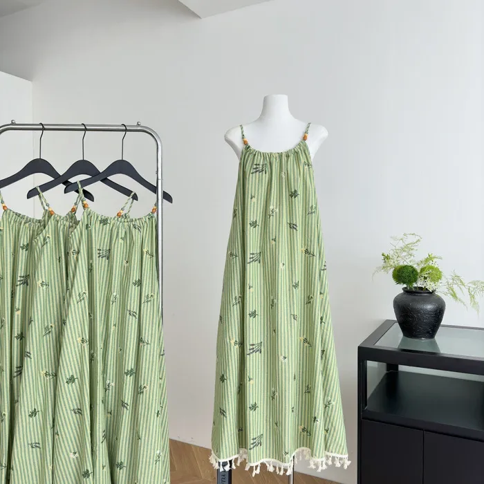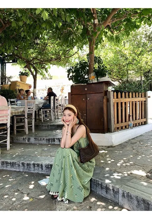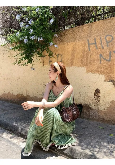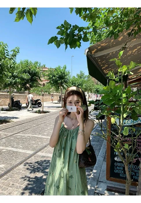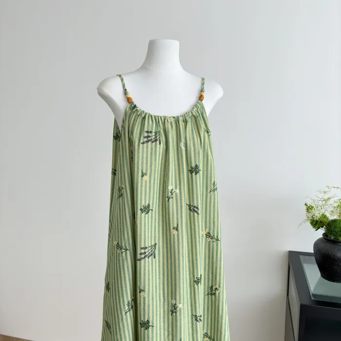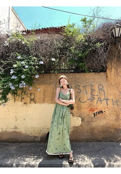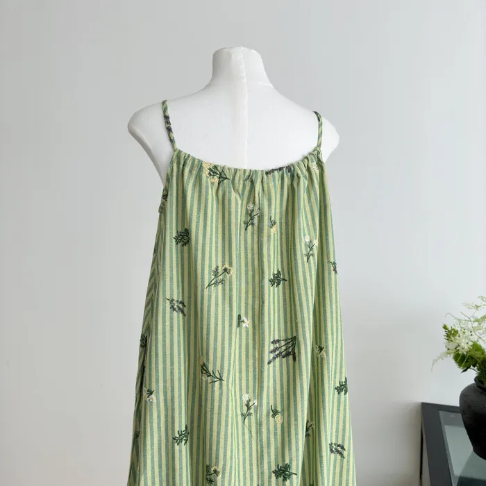 這件"一秒出國"綠條紋長洋裝