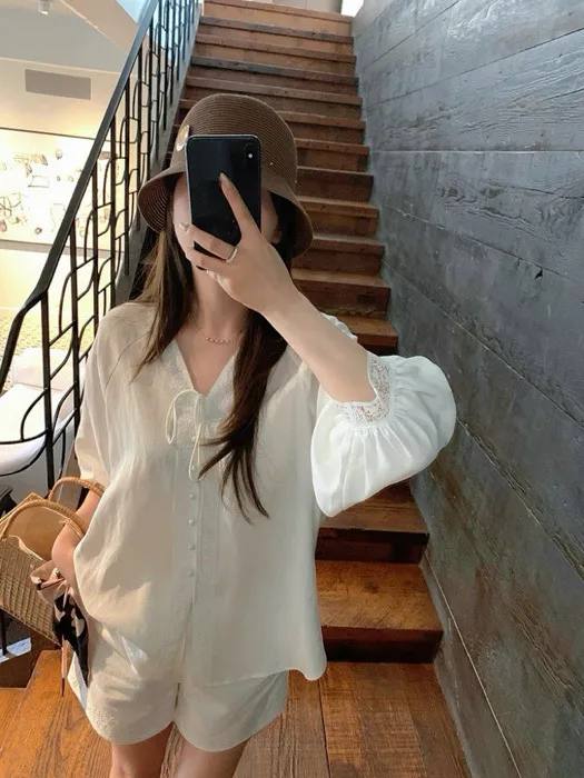 搭配的花邊短褲也是這期新品,不透膚也顯腿長