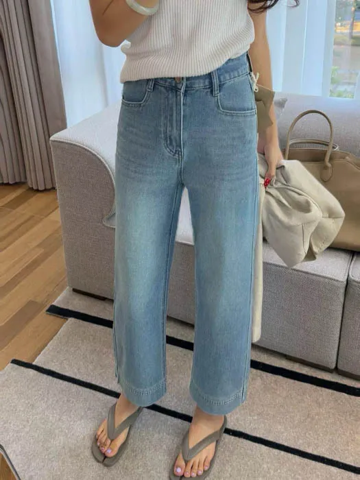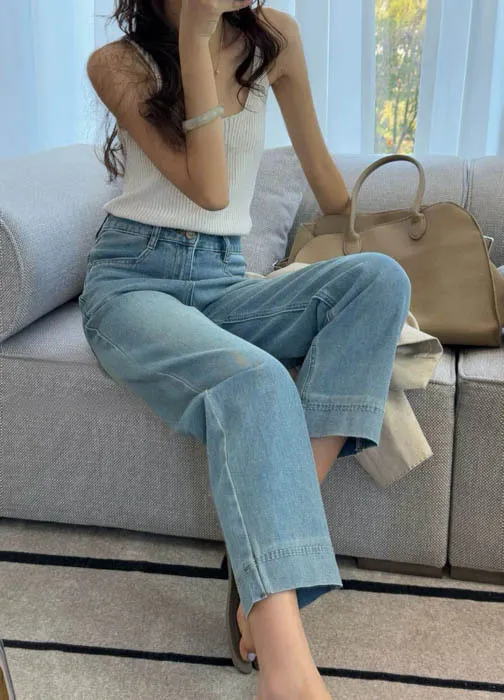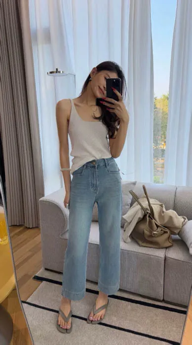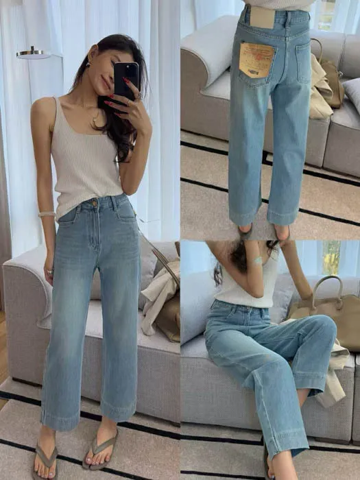— summer edit — 柔軟彈力顯瘦直筒九分褲 ((必須讓更多人看見它的厲害!! .高腰直筒剪裁 .自然乾淨刷色 .薄款布料夏天也能穿 ·有彈力的柔軟牛仔好穿程度真的天下無敵 ·高個或小個女孩都適合 小寬直筒版型很能修飾下半身比例搭涼鞋球鞋都時髦唷版型偏小,建議大一號更舒適 ✦ 限時免運 $790| 官網限量發售 季末斷貨潮售完不補喲