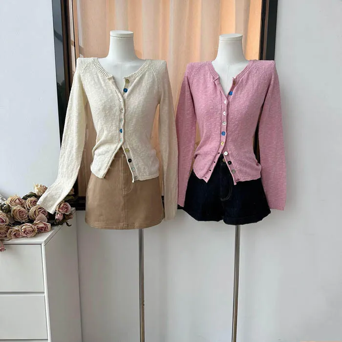 氣質米白搭上 亮彩貝殼感排釦