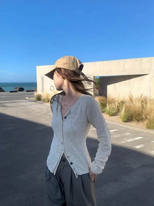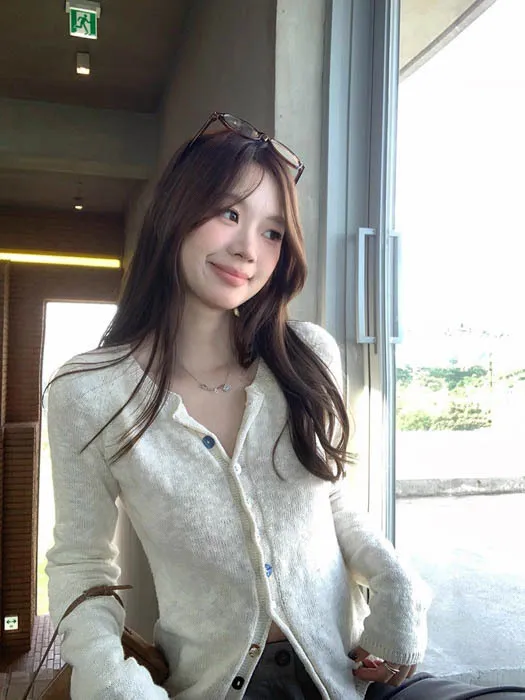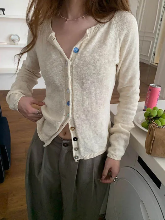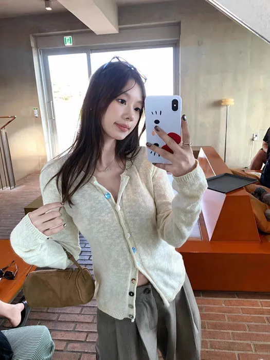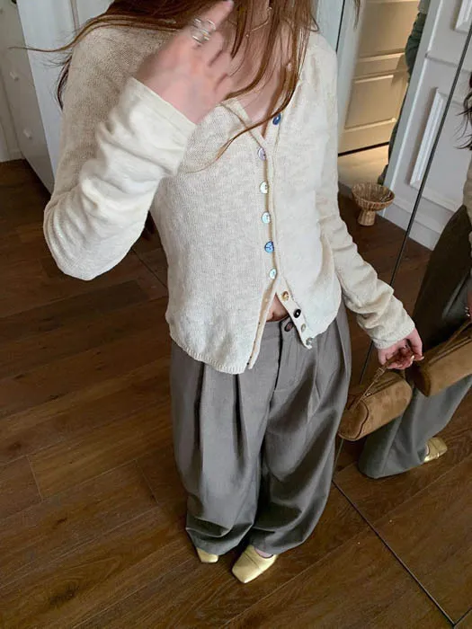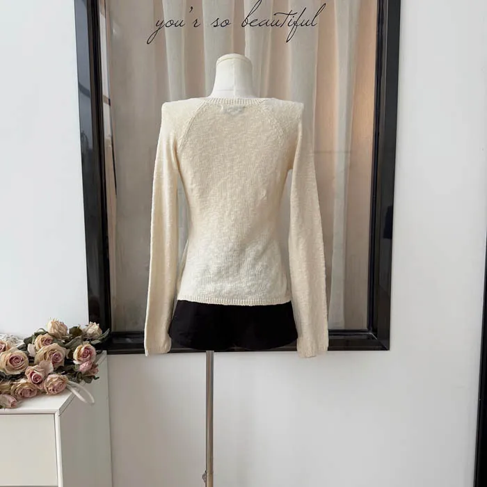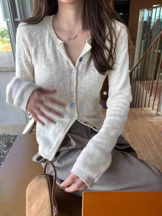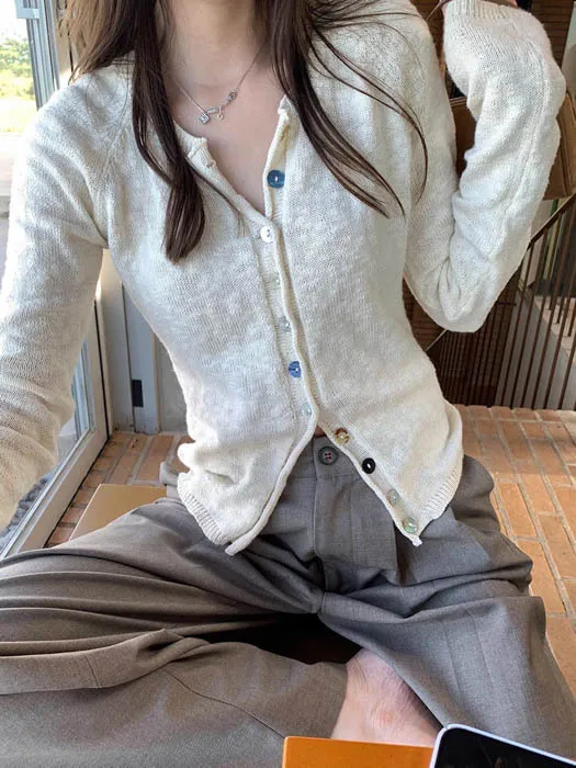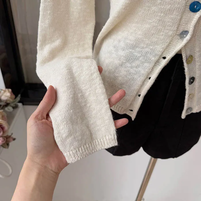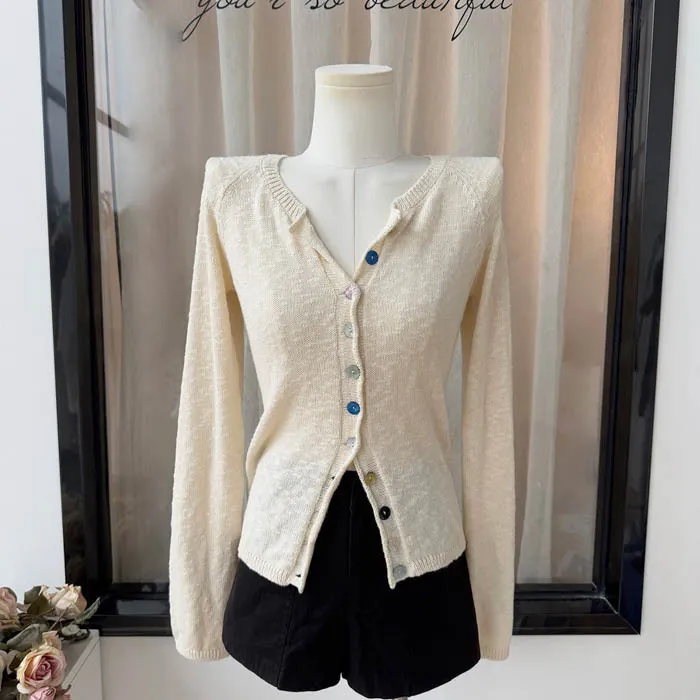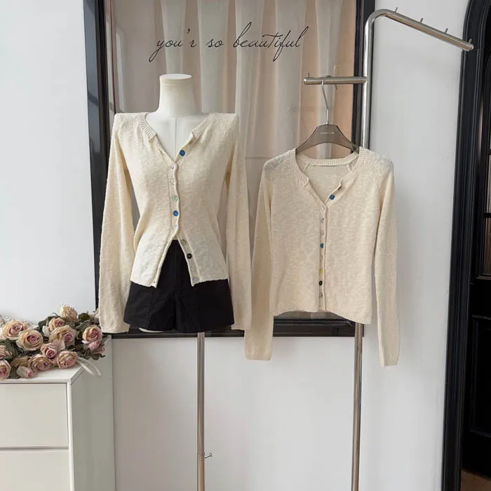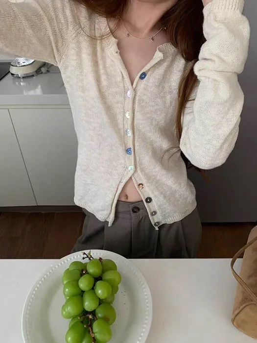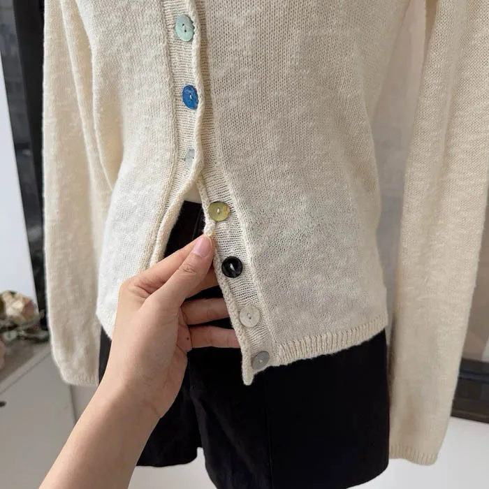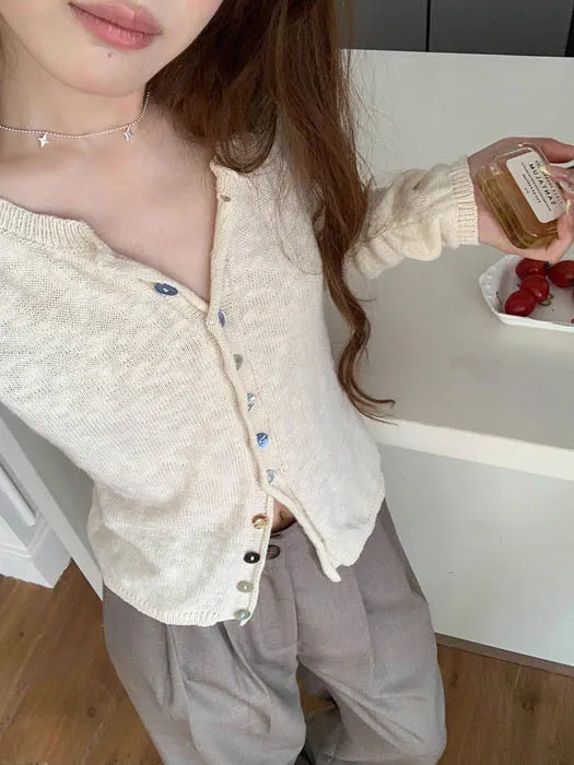 最後現貨 貝殼彩釦 微甜針織外套_奶杏色
