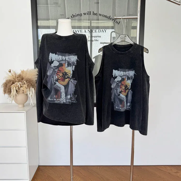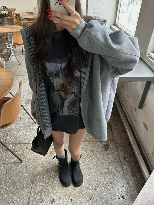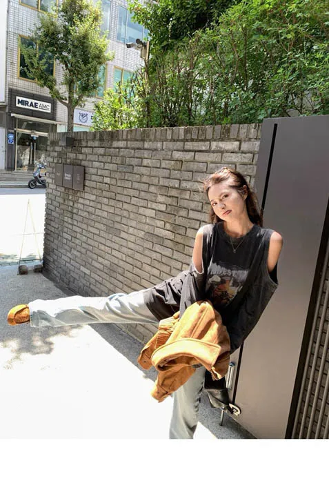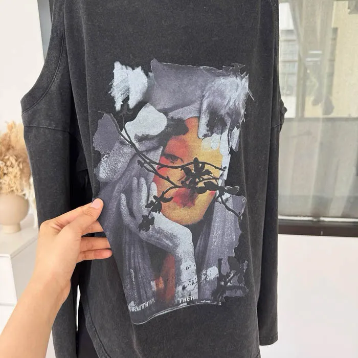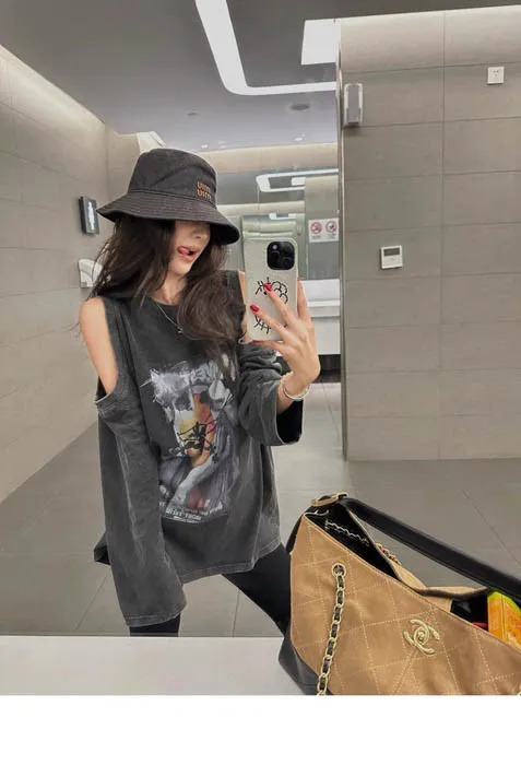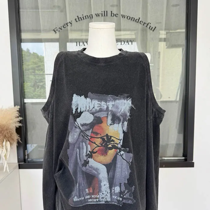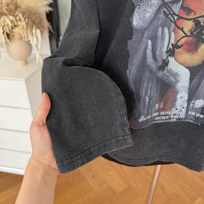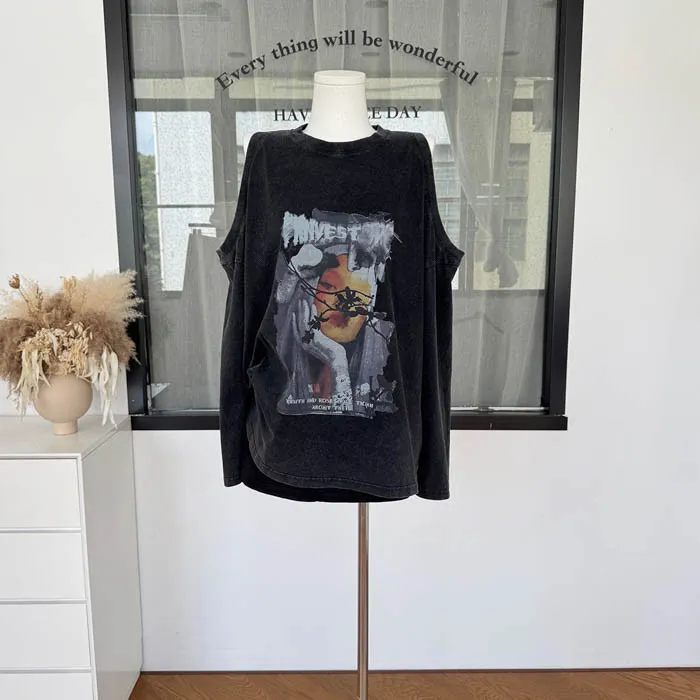 街頭感拉滿的一件Tee刷舊煙灰色搭配塗鴉設計