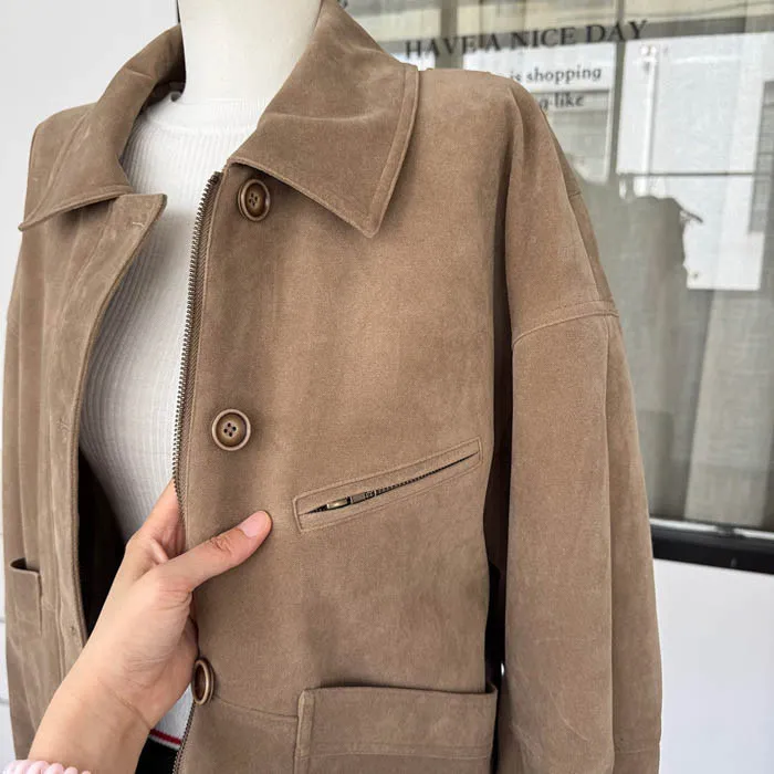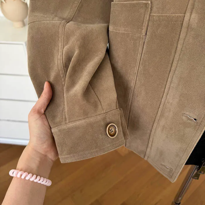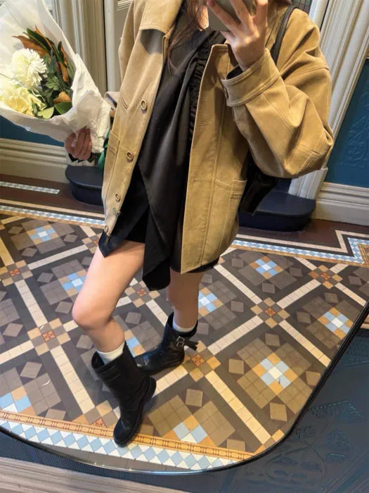 秋裝真的太美9/16~9/20一件也免運《新品任選兩件起》一件折$50、兩件折$100以此類推棕色下標區秋冬最不可或缺的質感外套 帥氣率性的好品質麂皮外套 質感麂皮外套為日常注入時尚份量感 尤其許多的細節與精緻程度可以放心 穿搭風格真的太美,讓人想接近卻有卻步的美 嚴選麂皮材質,手感細緻且挺實雙口袋設計方便又實用,貼心拉鏈版型機車族女孩保暖不透風背面壓摺車線盡顯與眾不同哦不論是通勤、約會還是拍網美照都能為穿搭增添一份俐落感