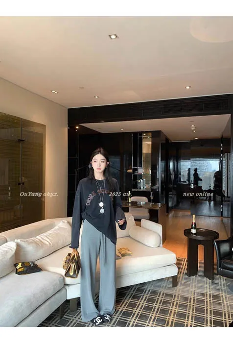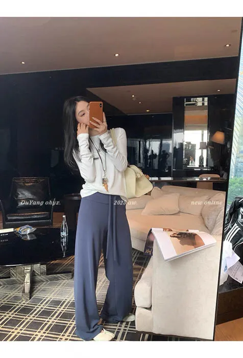 _ 垂墜感炸裂的高腰顯瘦寬褲