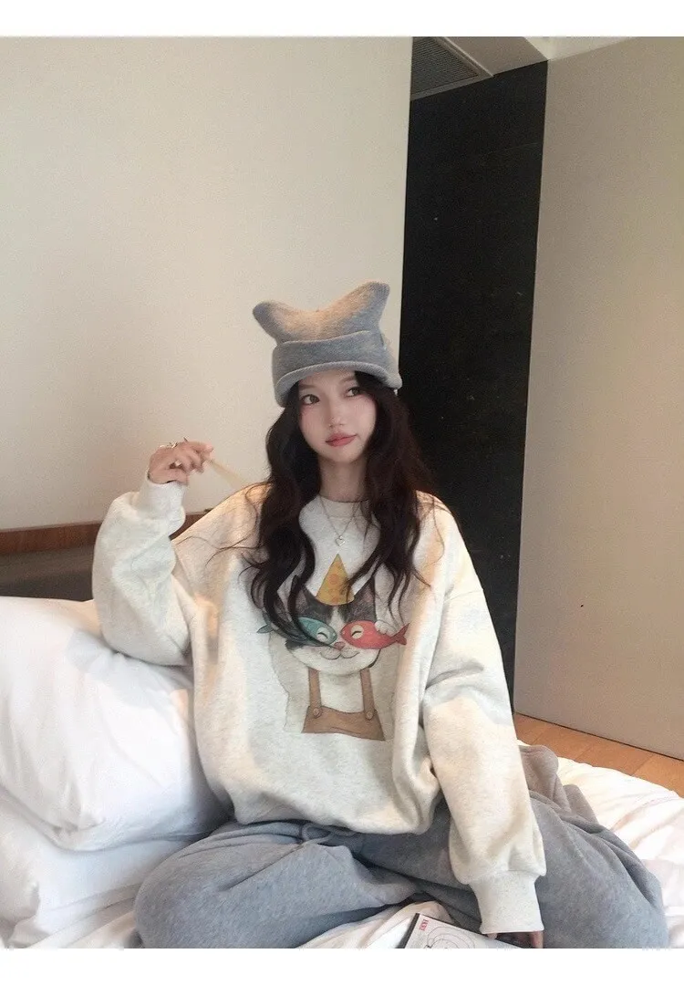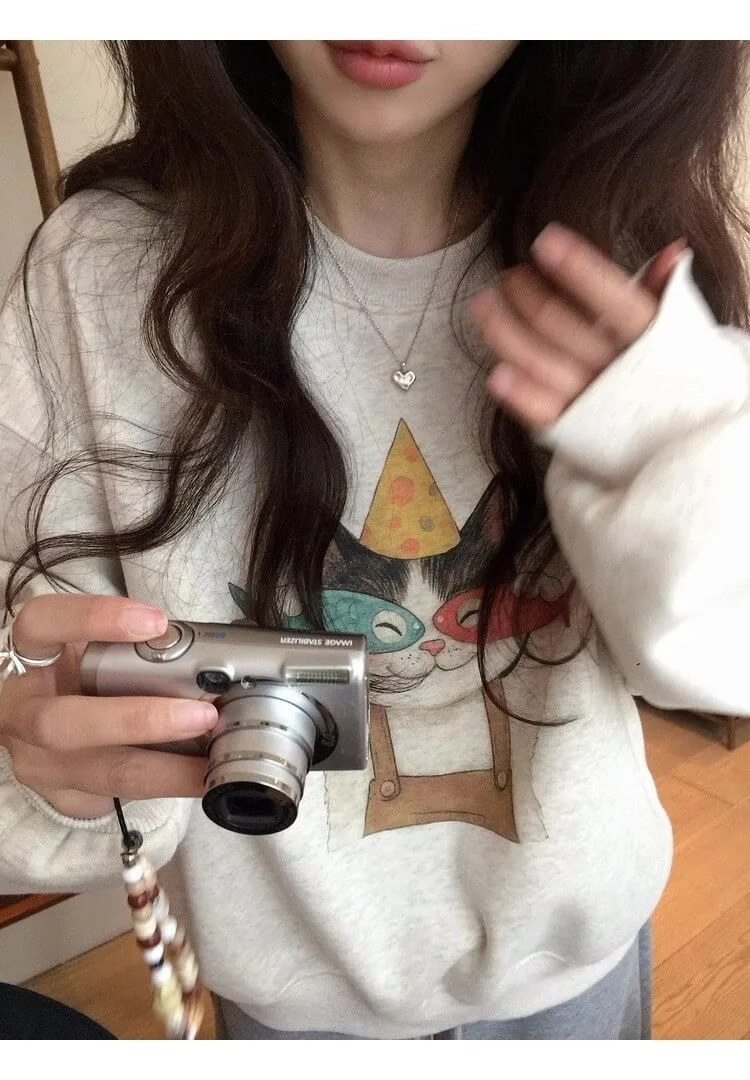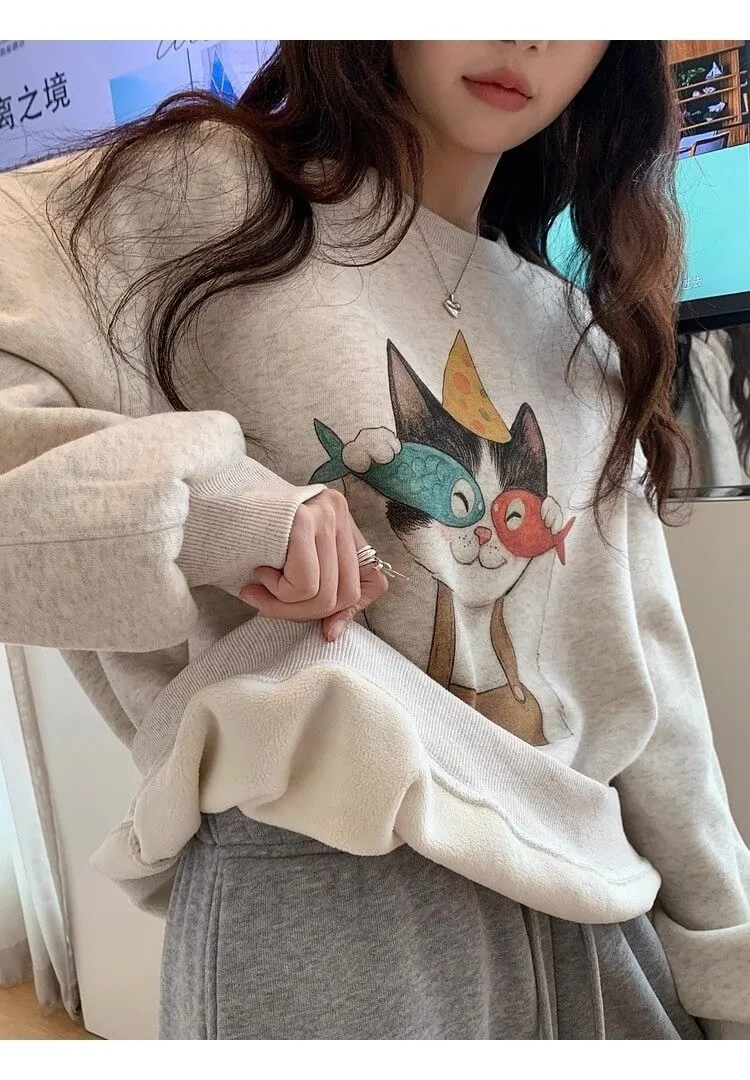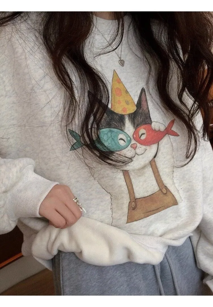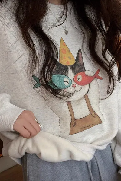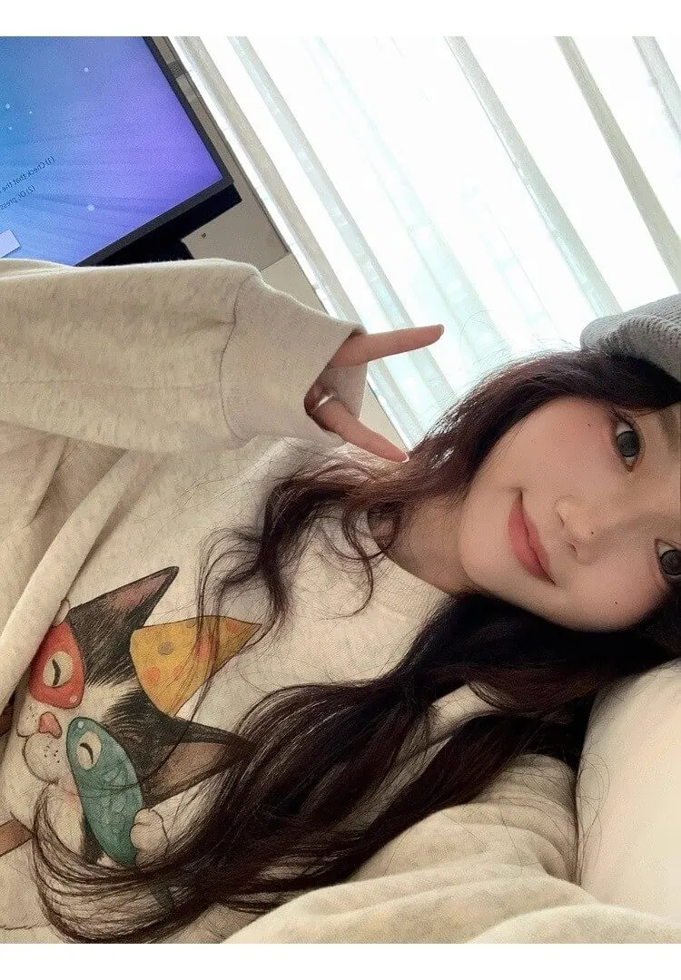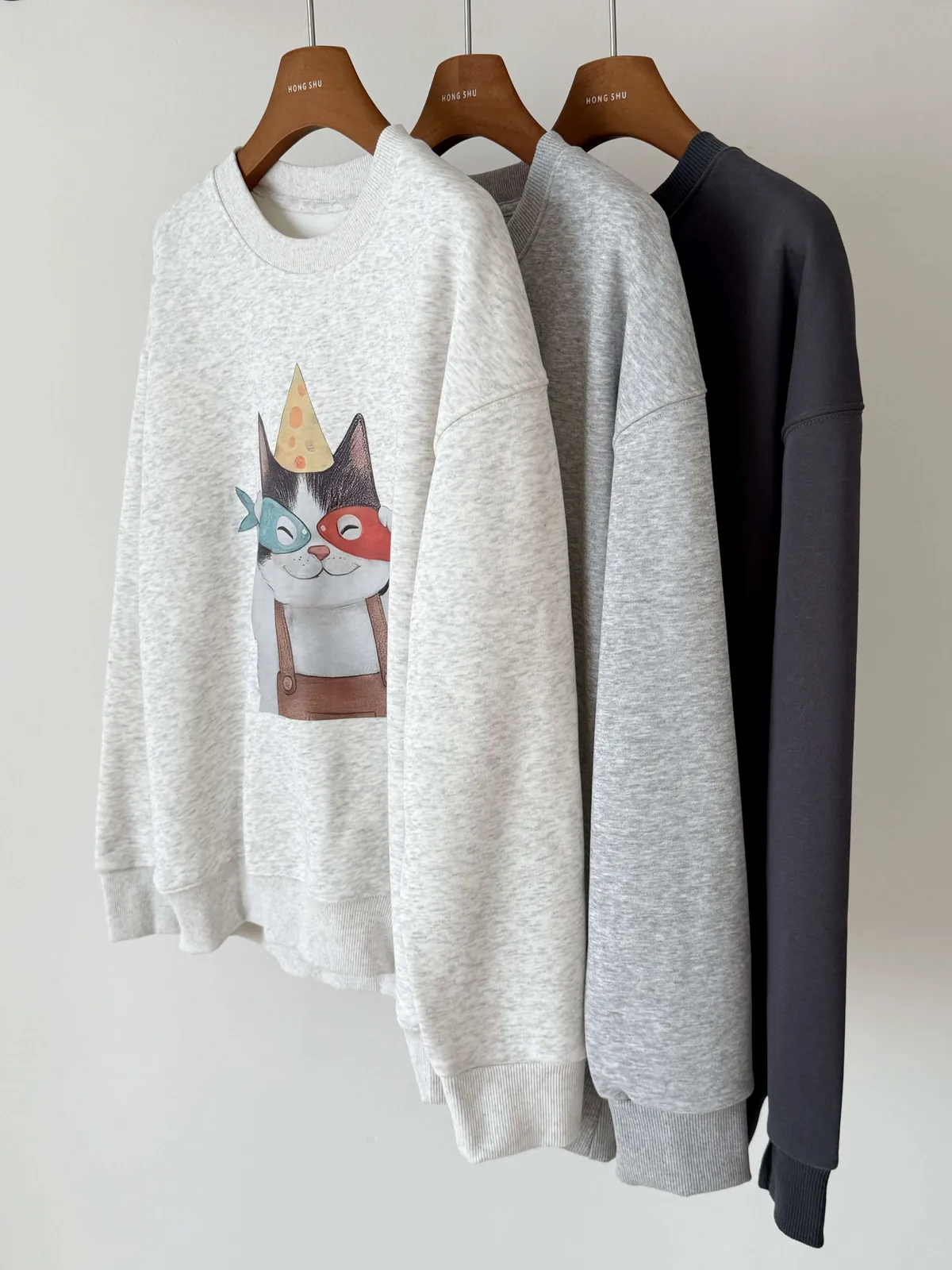 三色貓咪刷絨大學T,把暖度、可愛度、鬆軟度一次給足
