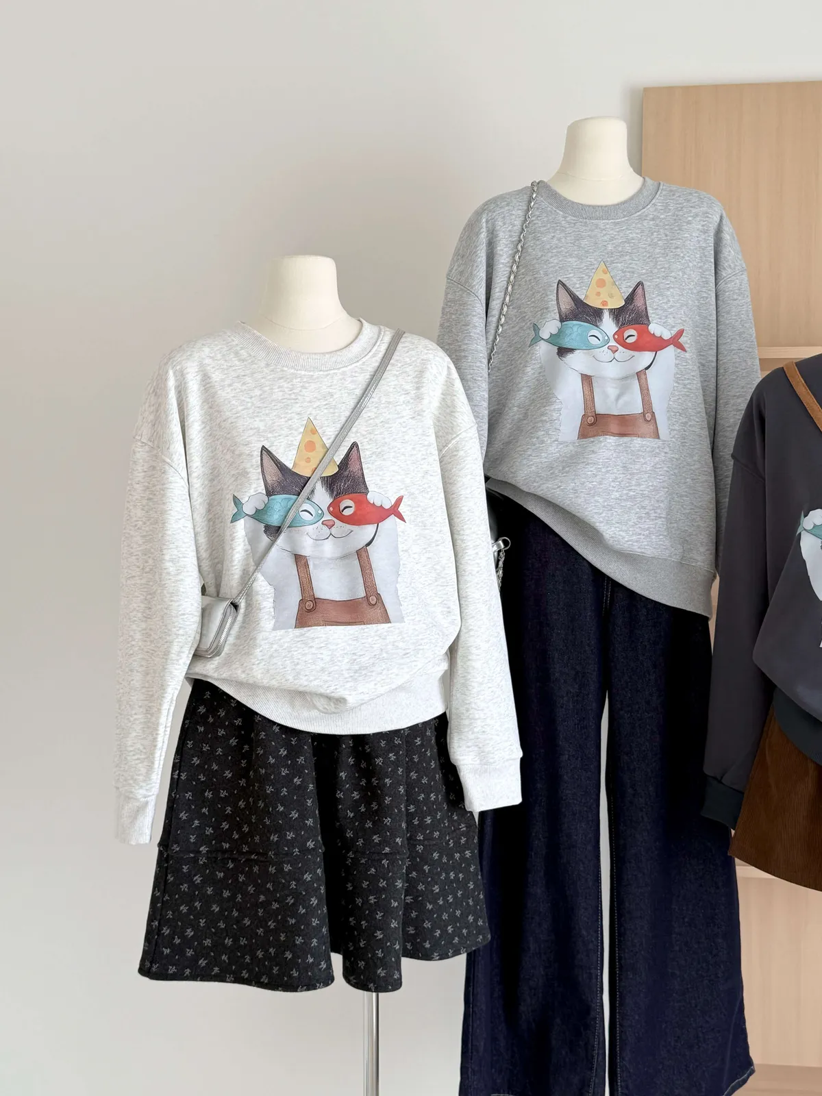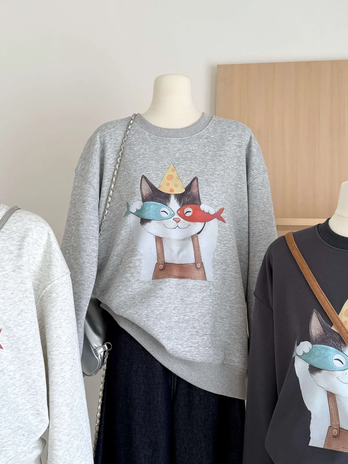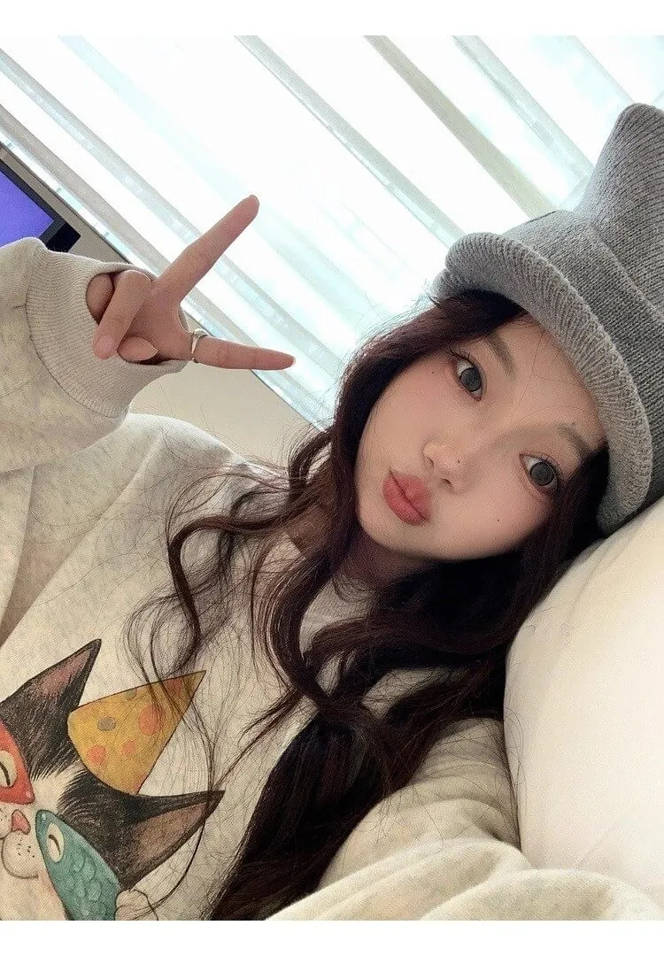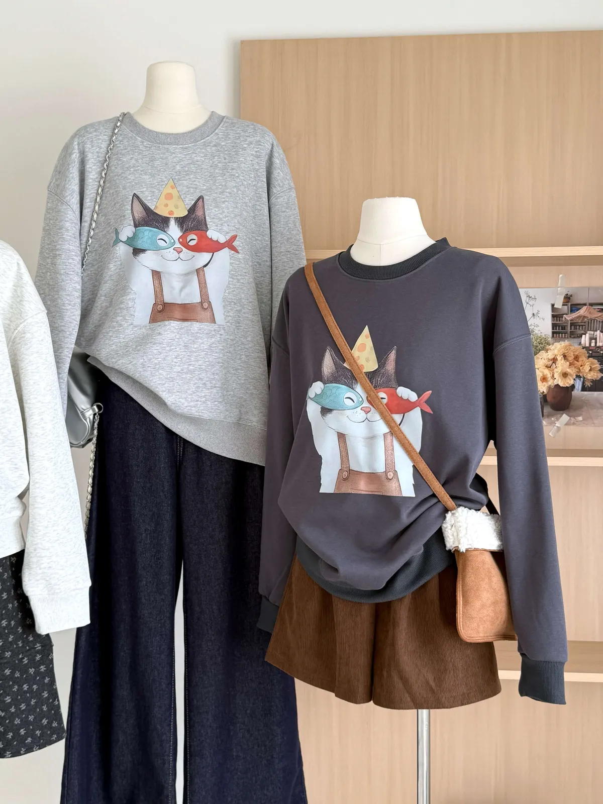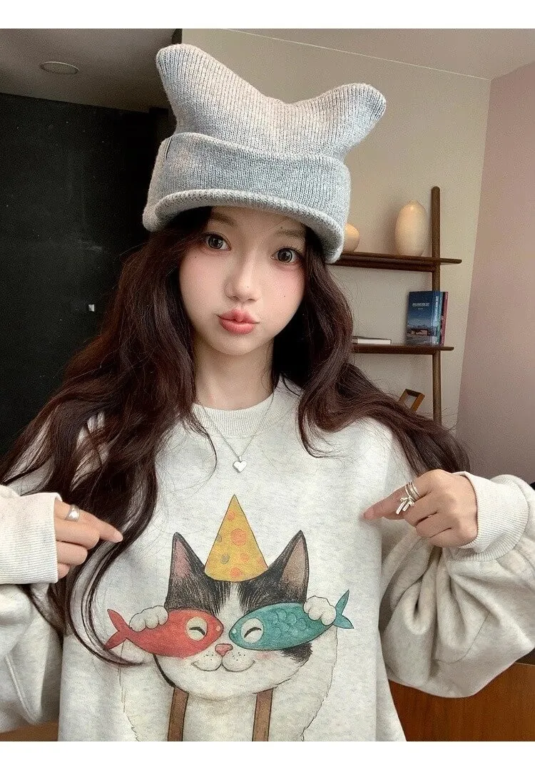 三色貓咪刷絨大學T,把暖度、可愛度、鬆軟度一次給足