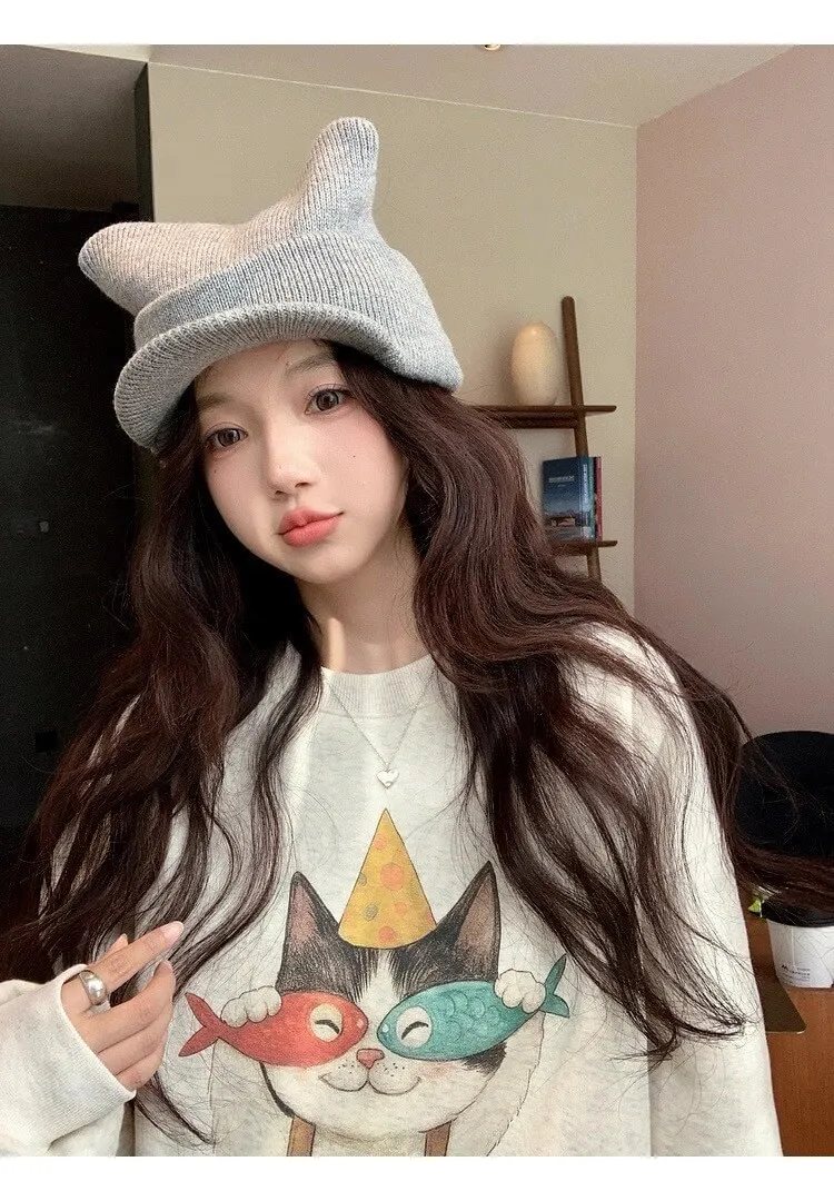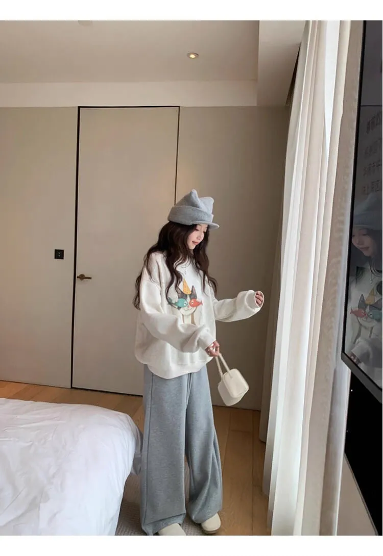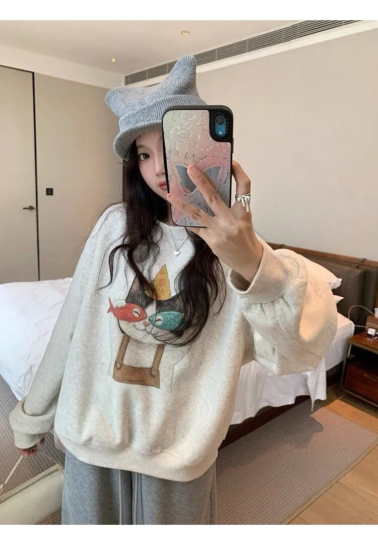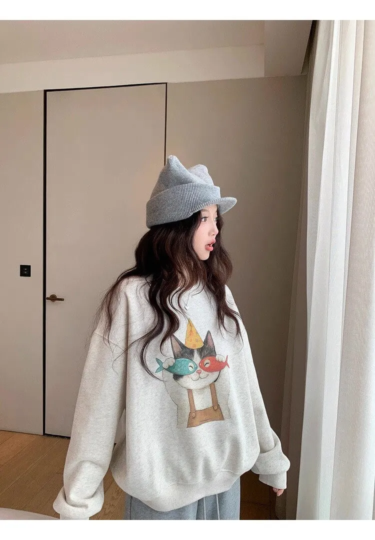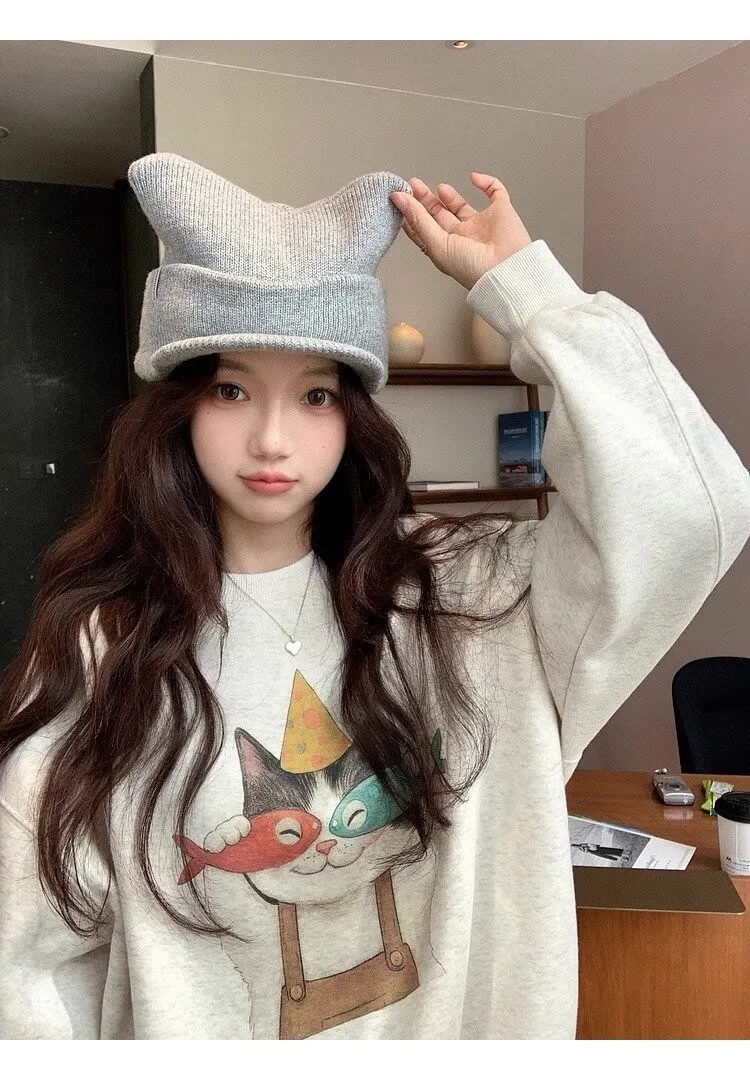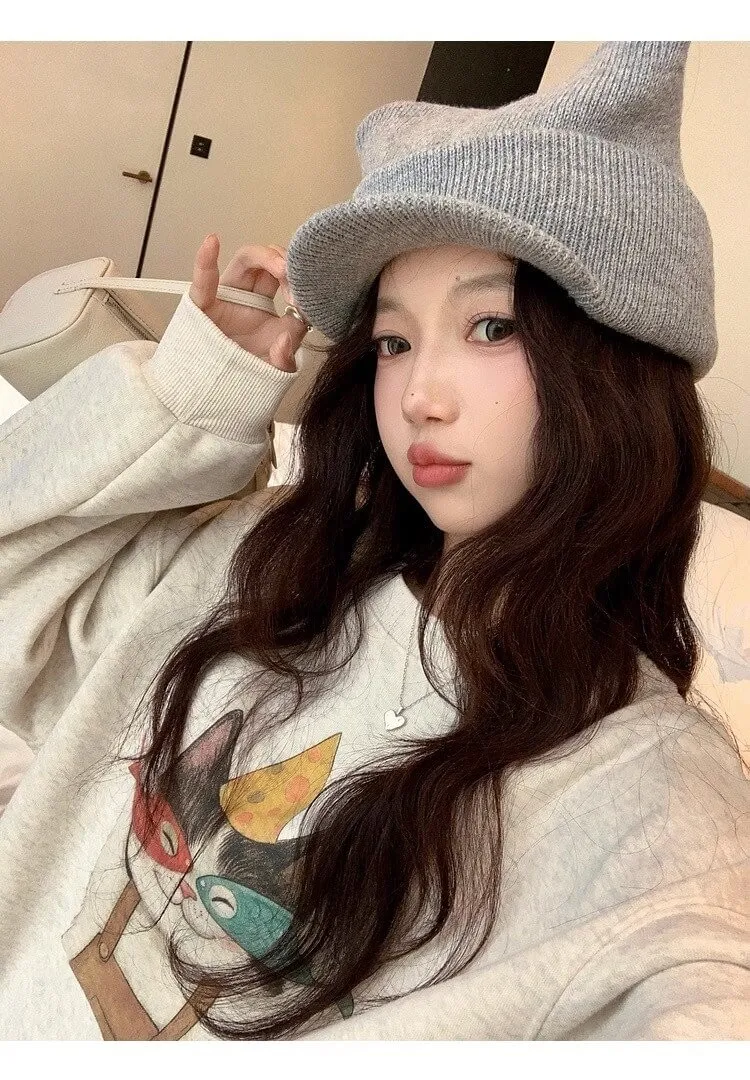 三色貓咪刷絨大學T,把暖度、可愛度、鬆軟度一次給足