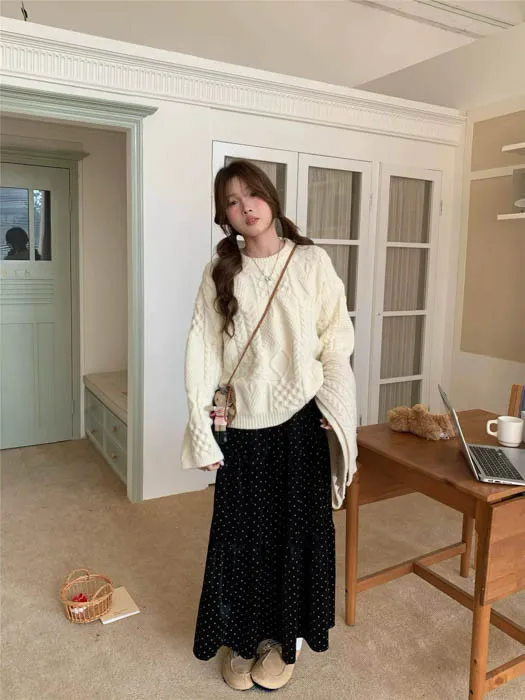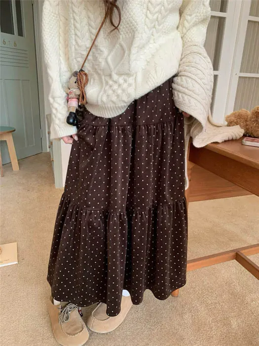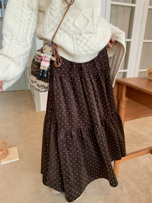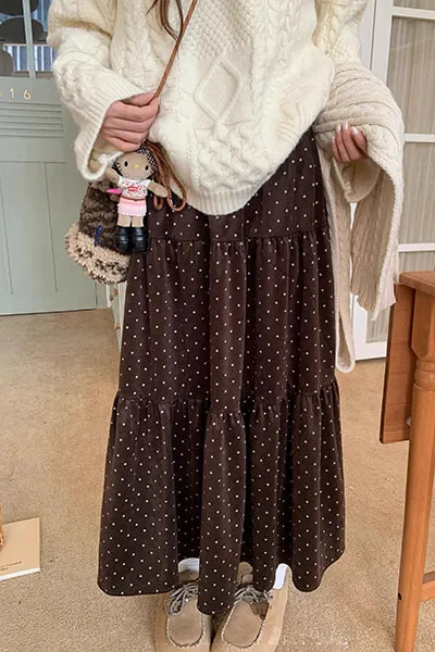 ❤歲末對自己好一點❤12/19~12/23一件就免運《新品任選兩件起》一件折$50、兩件折$100以此類推細緻點點圖案搭配絲絨材質布料觸感柔軟細緻,微微光澤讓整體穿搭更有質感鬆緊腰圍超好穿高腰剪裁修飾腰線搭配針織上衣或短版毛衣比例更好看不論是日常外出、約會或小正式場合都能輕鬆駕馭黑色經典耐看、咖色溫柔可愛,低調卻讓人一眼注意到的小亮點