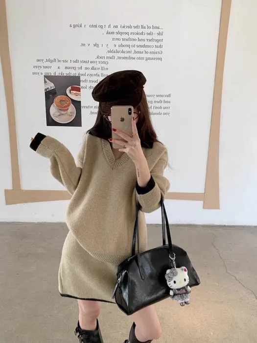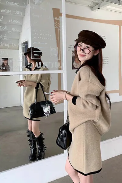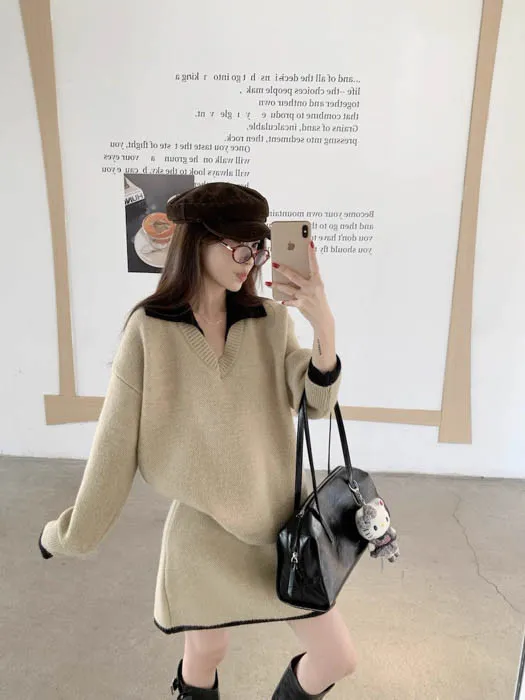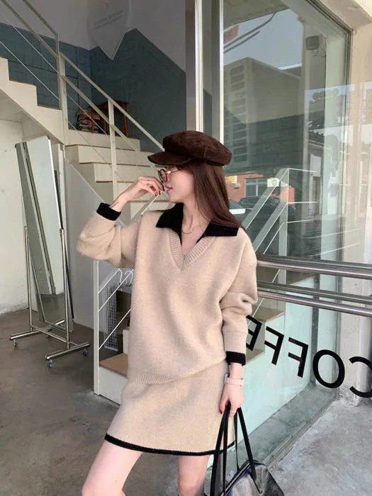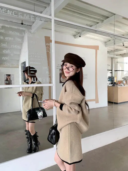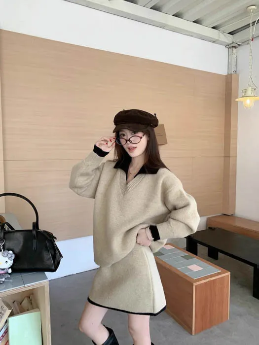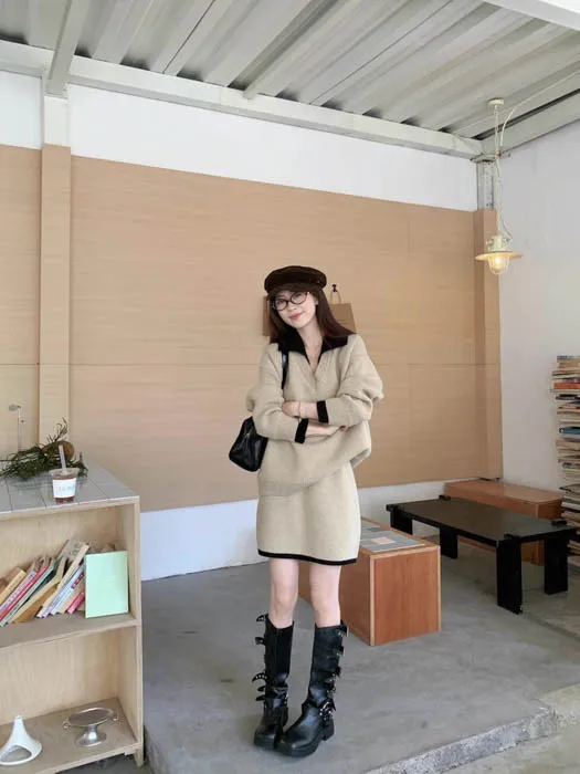 ❤歲末對自己好一點❤12/19~12/23一件就免運《新品任選兩件起》一件折$50、兩件折$100以此類推溫奶杏 SALE|兩件式柔軟毛衣套裙 官網上架限時免運$990 包色結帳再折$100 不用煩惱怎麼搭配,一套就能直接出門的溫柔日常 低調撞色領口與袖口細節,分開搭也好看 SALE 期間限定商品 數量有限,售完即止喔 ・柔軟到不想脫 ・一套完成穿搭 ・分開搭也很好看