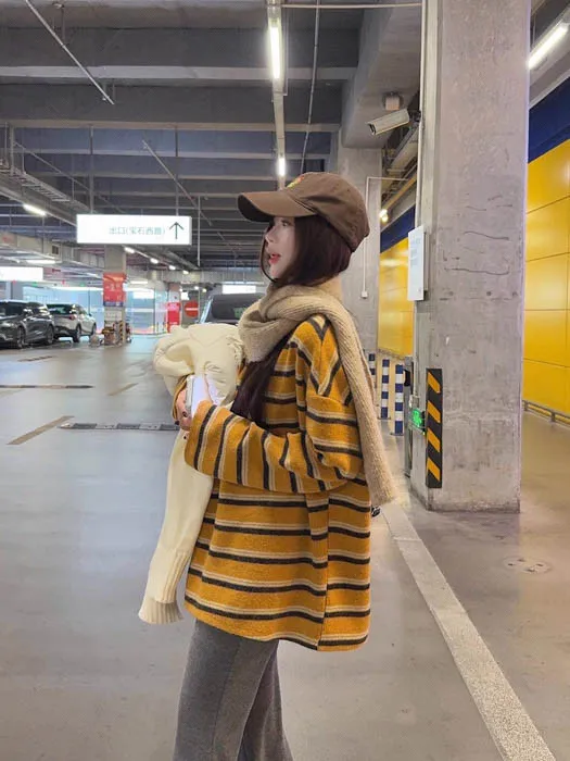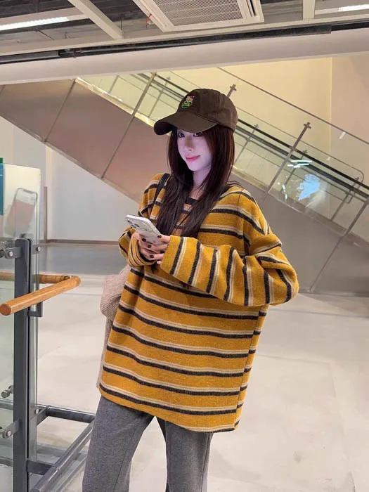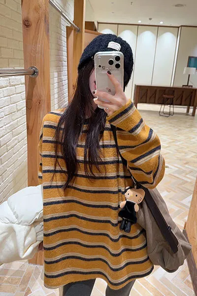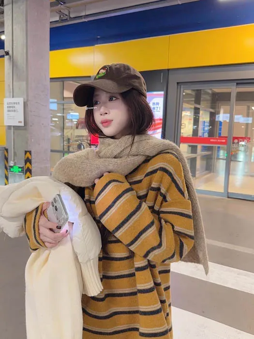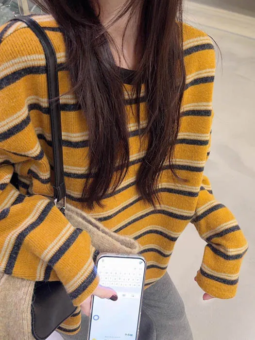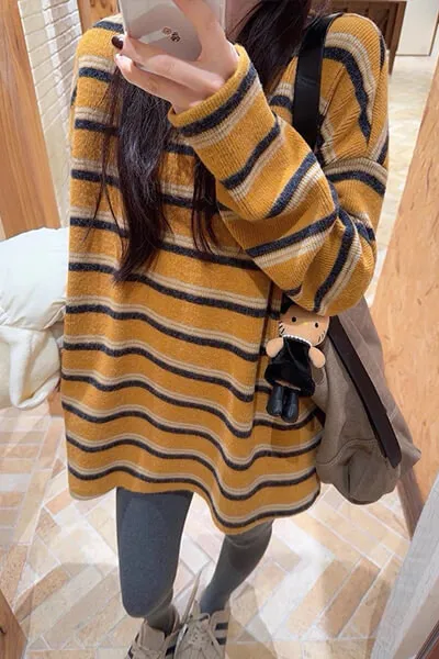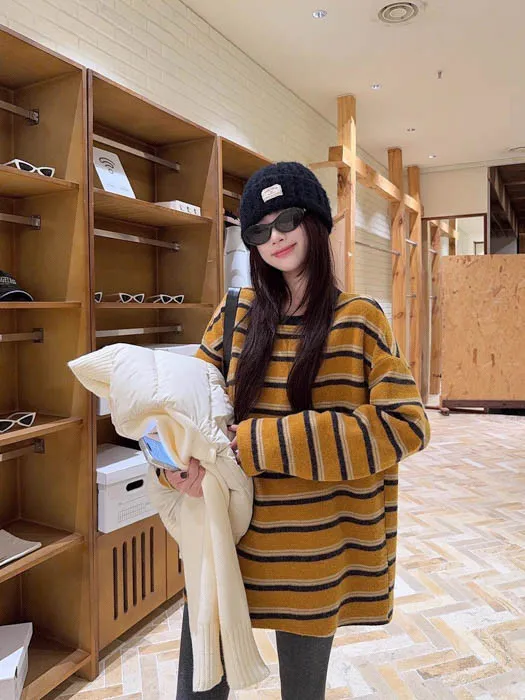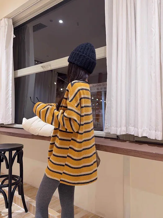 ❤歲末對自己好一點❤12/19~12/23一件就免運《新品任選兩件起》一件折$50、兩件折$100以此類推黃底條紋下標區 SALE — 暖暖條紋寬鬆長版針織毛衣 厚實 · 寬鬆 · 好搭 搭內搭褲很對味 現在入手最剛好 柔軟厚實、不刺膚一穿就有保暖感寬鬆長版剪裁自然遮肉,單穿就很有造型搭內搭褲、長襪就能輕鬆出門的懶人必收款唷