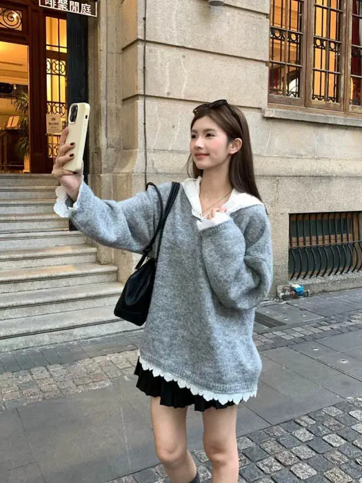 ✿過年前最後一波新品,我們快要放寒假啦✿1/23-1/30全館單一件免運《新品任選兩件起》一件折$50、兩件折$100以此類推哦一件搞定層次感!今冬最 MUST BUY 的微甜單品採用假兩件式設計精緻的白色蕾絲領口、下擺及袖口細節度滿滿的為整體造型注入滿滿的甜美氛圍在冷冷的冬天也能散發甜甜的香味