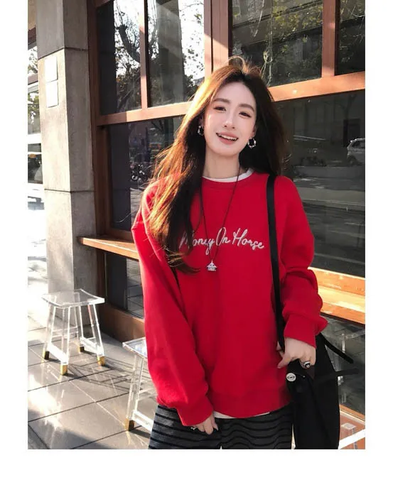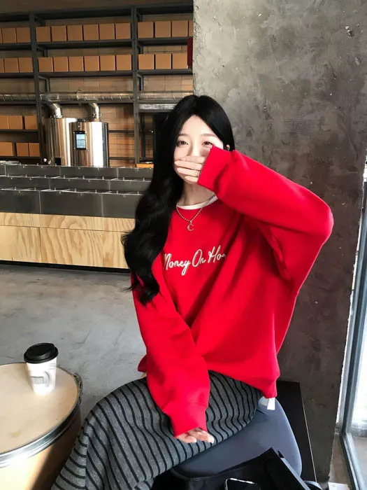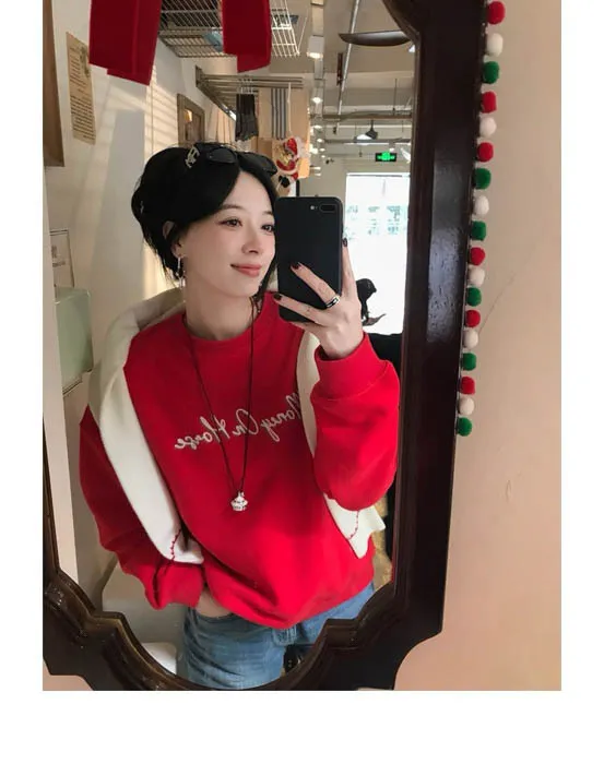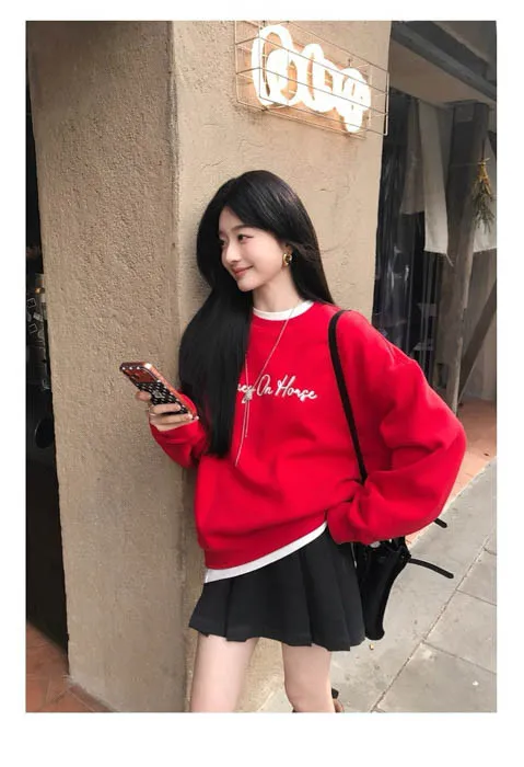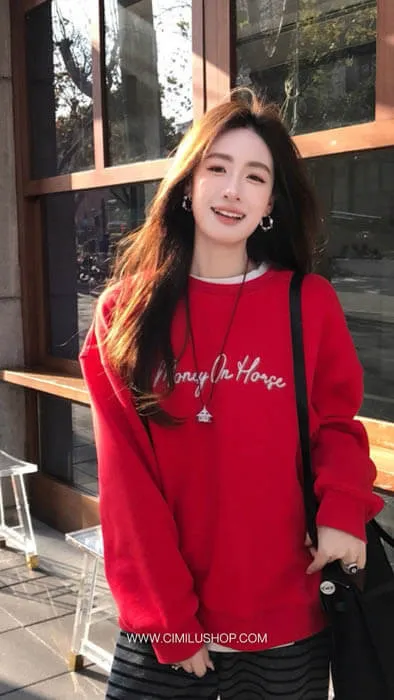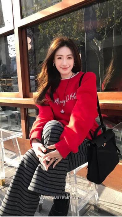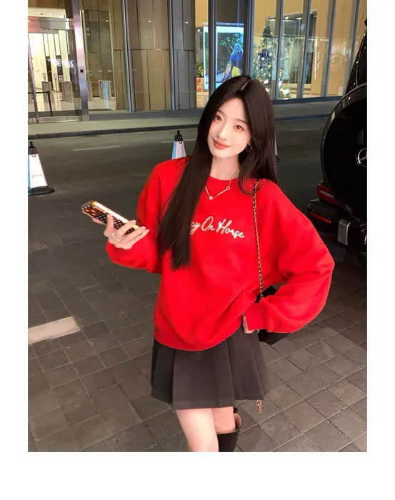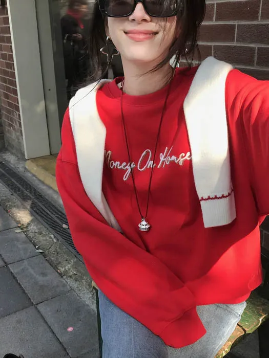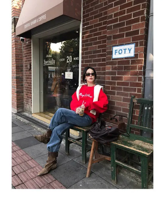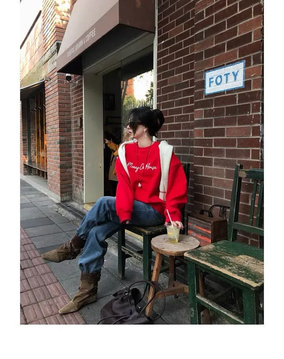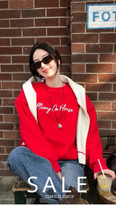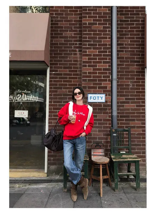 這件紅色大學 T紅得剛剛好,氣色直接升級