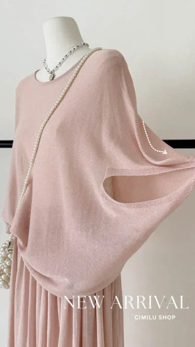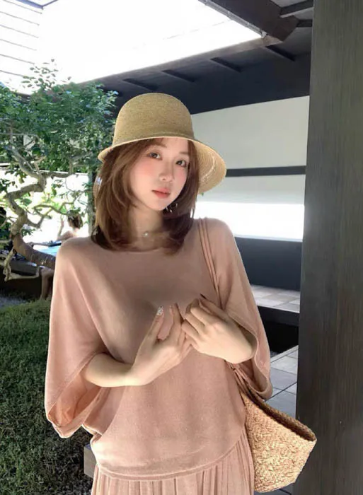 上衣的飛袖設計修飾手臂線條