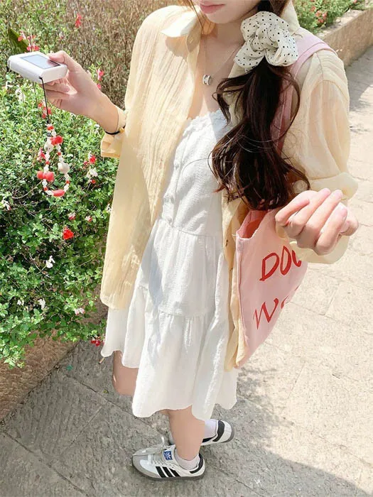 《 NEW春裝新品4/7~4/12限時優惠 》全館單一件就免運 購買新品滿$500,於結帳頁面輸入coupon碼「NEW2026」現折$50 《新品任選兩件起》一件再折$50、兩件折$100以此類推 小清新+甜美感直接拉滿怎麼搭都好看 春天可以一路穿到夏天!CP值很高的一件👏 現在還是甜甜價清新控女孩可以直接閉眼入手!