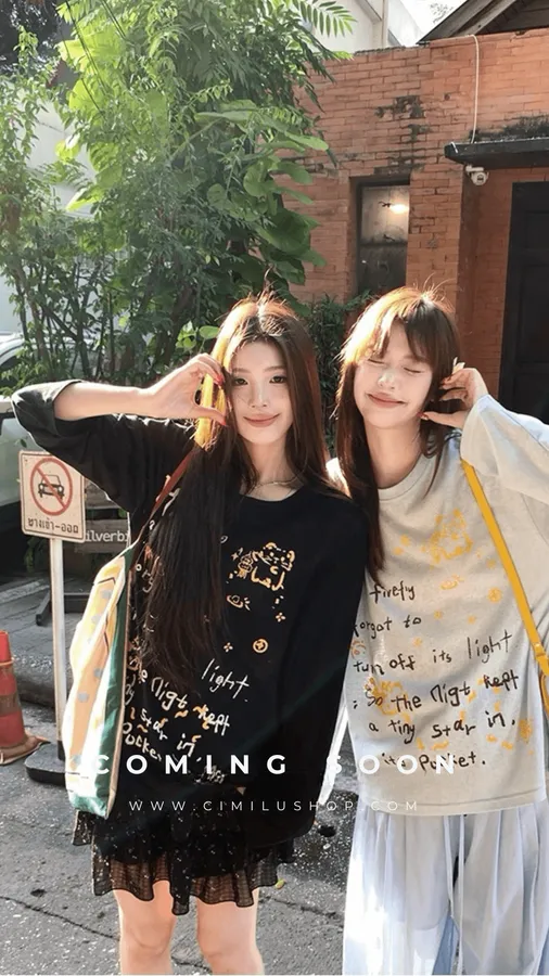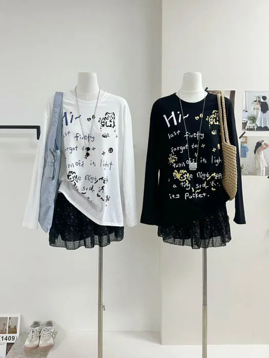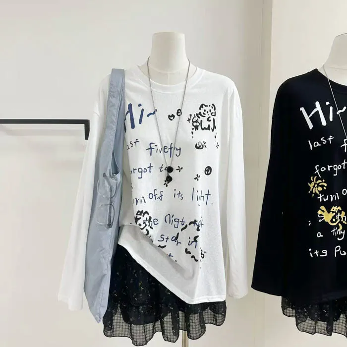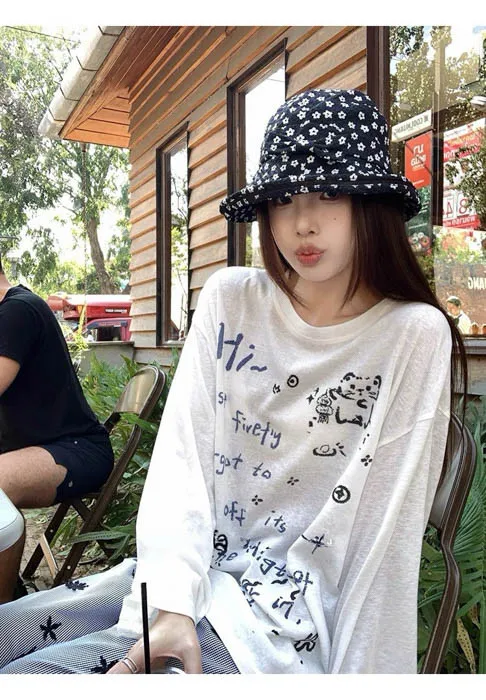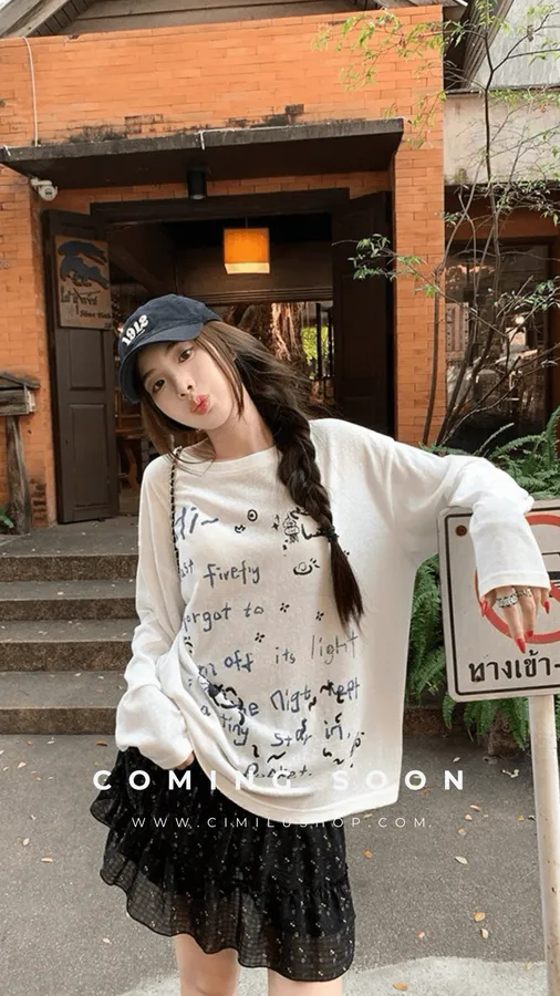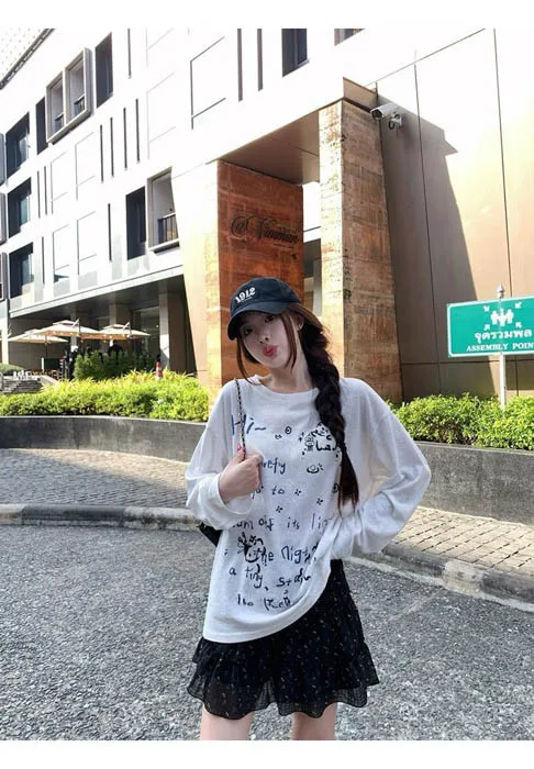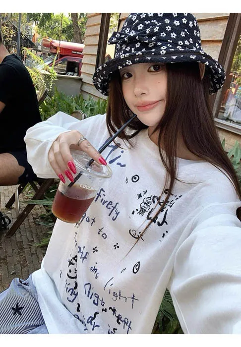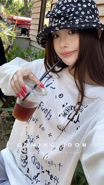 俏皮的貓咪塗鴨中長版上衣