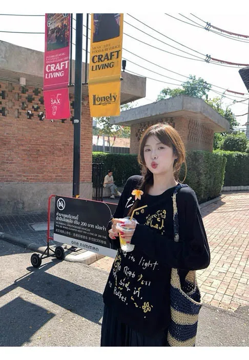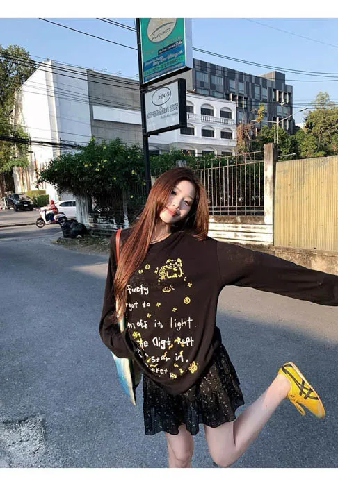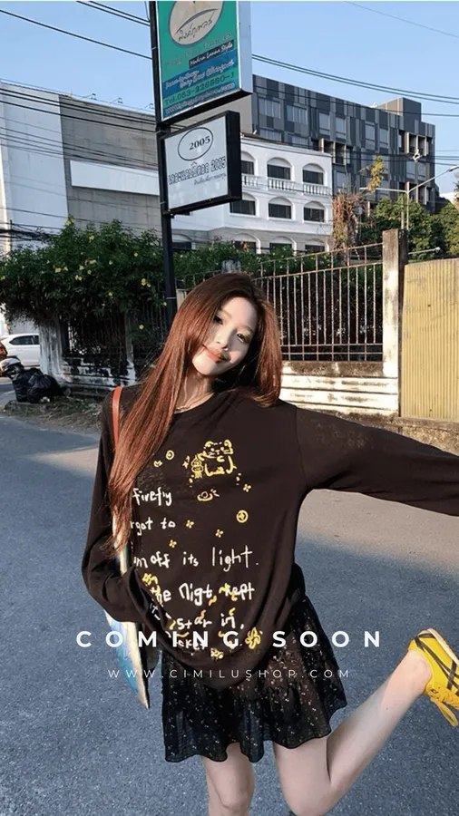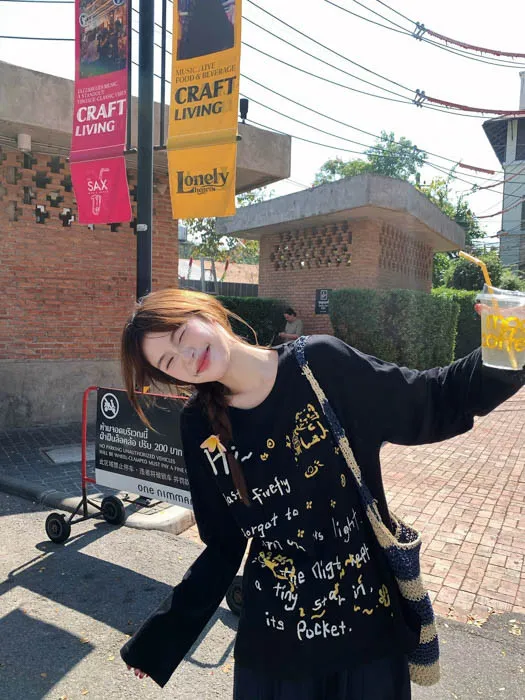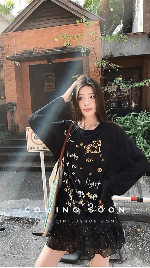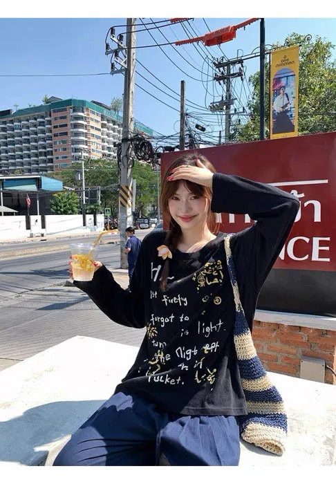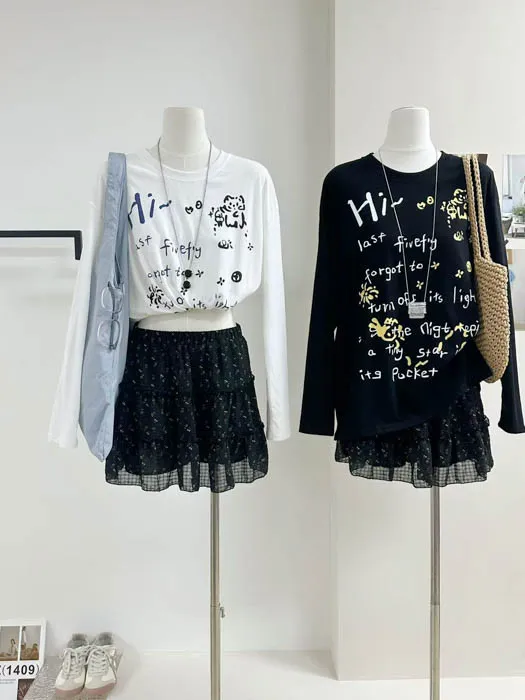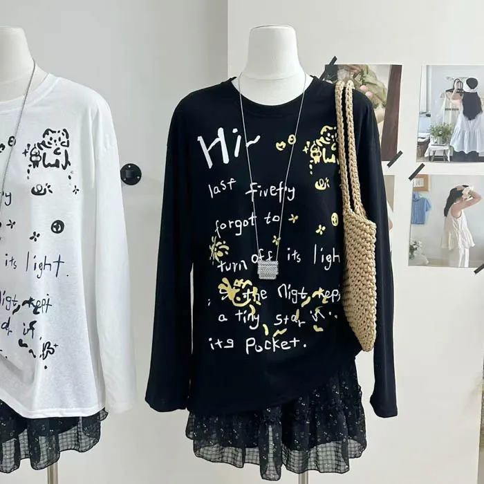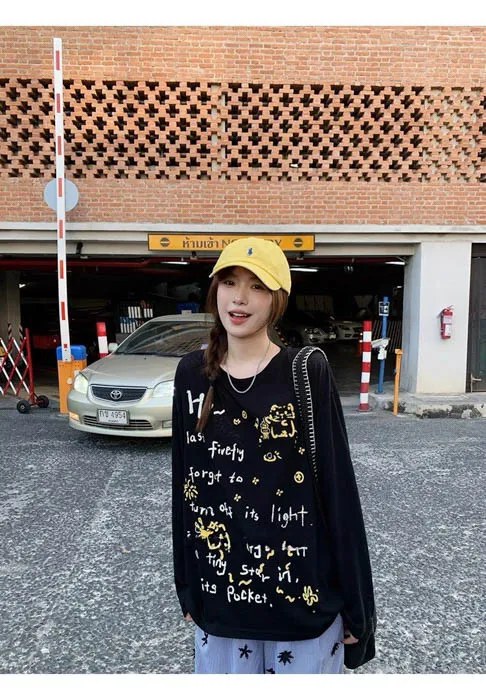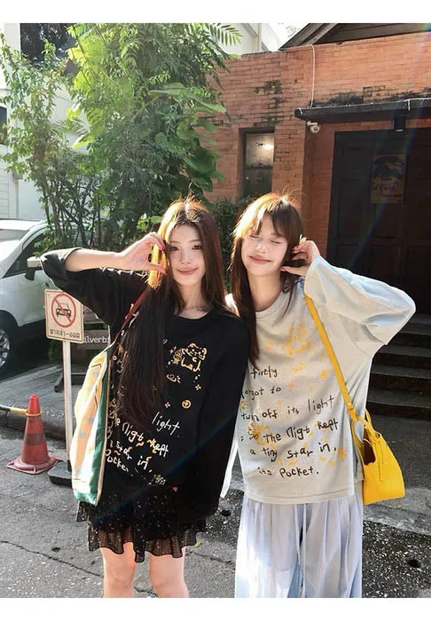 俏皮的貓咪塗鴨中長版上衣